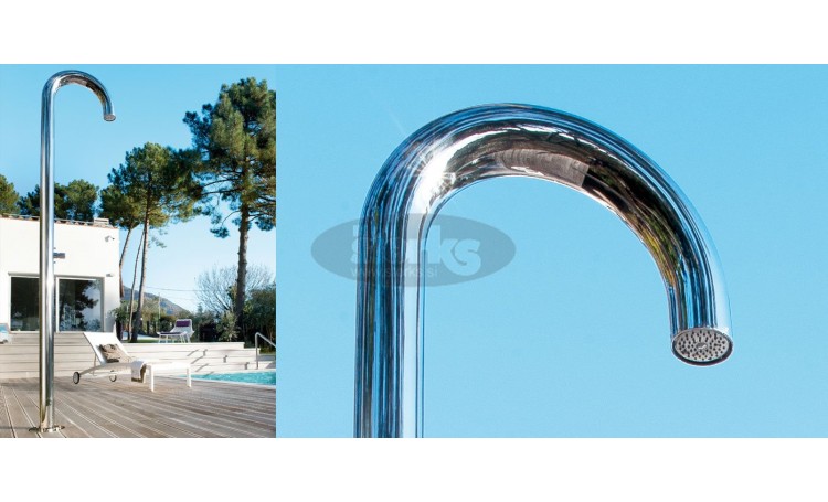 Außendusche mit freiem Strahl: - für Fernbedienung, - mit Absperrhahn, - mit Mischer, - mit Mischer und Handbrause. AUSSTATTUNG - Säule: Edelstahl Aisi 316, Stärke 3 mm - Basisflansch: Edelstahl Aisi 316, Stärke 5 mm - Bodenbefestigung mit Gewindestangen, Muttern und Unterlegscheiben, alles aus Edelstahl Aisi 316 TECHNISCHE INFORMATIONEN Wasserversorgung: abhängig von Ihrer Auswahl eines Öffnungsmechanismus empfohlener Fließdruck: 1 ÷ 5 Bar Standard-Wasserversorgung von Bodenanschluss: ½ "F