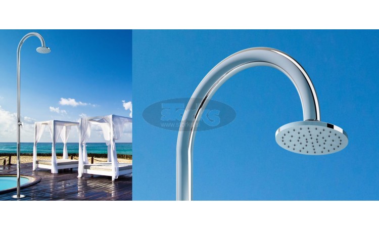 Außendusche mit 300 mm Duschkopf:- für Fernbedienung,- mit Absperrhahn,- mit Mischer,- mit Mischer und Handbrause.AUSSTATTUNG- Säule: Edelstahl Aisi 316, Stärke 3 mm- Basisflansch: Edelstahl Aisi 316, Stärke 5 mm- Bodenbefestigung mit Gewindestangen, Muttern und Unterlegscheiben, alle aus Edelstahl Aisi 316TECHNISCHE INFORMATIONENWasserversorgung: abhängig von Ihrer Auswahl des Öffnungsmechanismusempfohlener Fließdruck: 1 ÷ 5 BarStandard-Wasserversorgung von Bodenanschluss: ½ "F