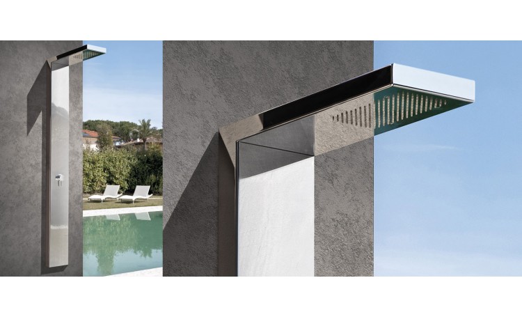 Außendusche mit verdecktem Duschkopf:- für Fernbedienung,- mit Absperrhahn,- mit Mischer,- mit Mischer und Handbrause,- mit zeitlich begrenztem Selbstschlussventil.AUSSTATTUNG- Säule: Edelstahl Aisi 316, Stärke 3 mm- Basisflansch: Edelstahl Aisi 316, Stärke 5 mm- Bodenbefestigung mit Gewindestangen, Muttern und Unterlegscheiben, alle aus Edelstahl Aisi 316TECHNISCHE INFORMATIONENWasserversorgung: abhängig von Ihrer Auswahl des Öffnungsmechanismusempfohlener Fließdruck: 1 ÷ 5 BarStandard-Wasserversorgung über Bodenanschluss: ½ "F