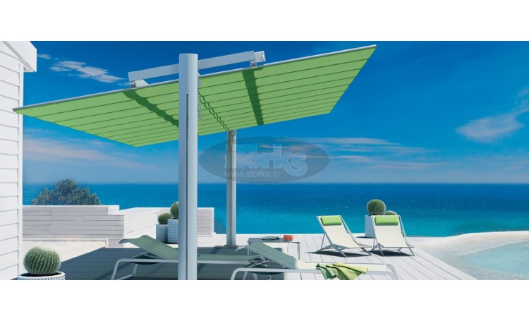 Ein modulares System mit modernem Design ermöglicht die Abdeckung großer Flächen ohne zentrale Hindernisse. Die elliptischen Stützen können mit einem integrierten LED-Beleuchtungssystem ausgestattet werden. Es ist in 8 verschiedenen Größen erhältlich, die miteinander kombiniert werden können und so die Möglichkeit bieten, weitläufige Bereiche abzudecken. Dieses System ist ideal für den gewerblichen Einsatz (Hotels, Restaurants usw.) sowie für den privaten Bereich (Villen, Gärten).