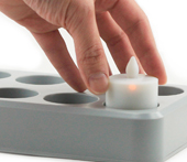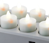 Our flicker candles can be recharged and reused over and over again – each candle has a lifetime of approximately 6,000 hours! They use advanced wireless inductive technology for recharging, making them easier to use and more reliable than conventional conductive charging systems.