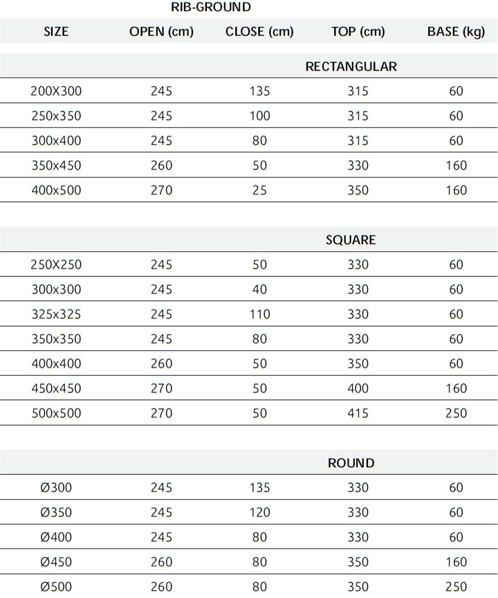 Highest quality raw materials turn into works of art in our facilities - we want to make sure that the construction feels both reliable and luxurious. Our aluminum frames are powder-coated or eluxated on request. For all umbrellas up to the size of 4×4 m with a raised valve, the ribs can be made out of Iroko wood or aluminum. Larger umbrellas and umbrellas with a patented Split Solution system can be made only with aluminum ribs. All other metal components are zinc-plated and powder-coated (except for aluminum ribs and mirror-polished stainless steel umbrellas).