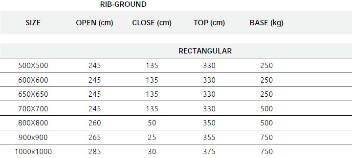 Choice between a cement base with river gravel or a steel buried base over which the parasol can be attached to the base.