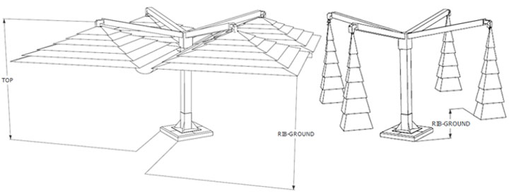 A colossal umbrella that can not be overlooked. As advancement in the Multiple Canopy Line, this patio umbrella is a true feat of engineering. This special class umbrella, consisting of four canopies joined together on a single pole, is impressive due to its dimensions and stable construction.