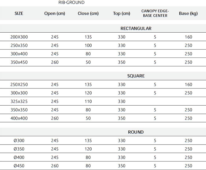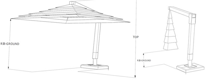 This medium size, lateral pole umbrella brings together operating comfort and technology by eliminating the central pole thus opening up wider shade space.