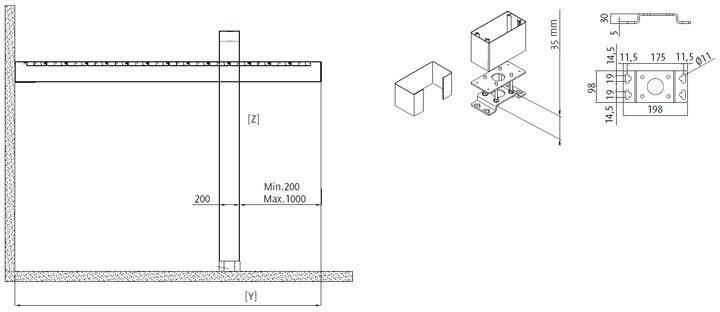 Obodni izlaz vode 20 x 20 cm za odvodnjavanje kišnice kroz stupove.