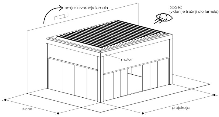 Maksimalne dimenzije: širine 4,5 m x projekcija 8 m s 2/3 stupova dimenzije 20 x 20 cm.