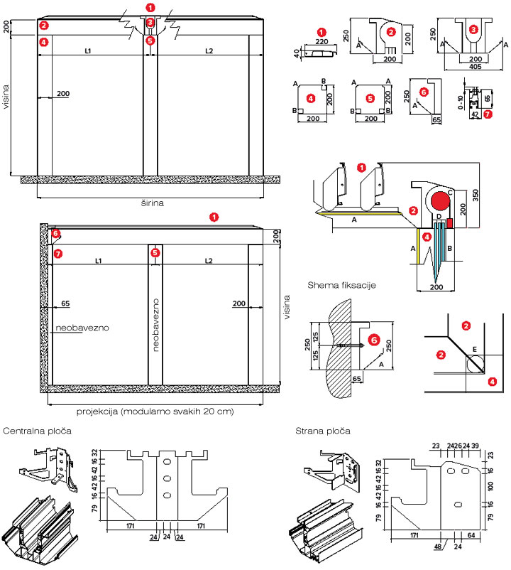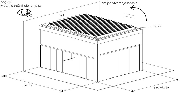 Maksimalne dimenzije: širine 4,5 m x projekcija 8 m s 2/3 stupova dimenzije 20 x 20 cm.