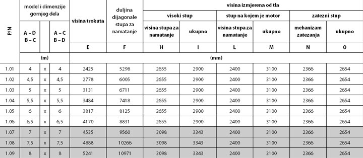 Neobavezno: LED usmjerena svjetla, električni priključci motora i LED reflektora, daljinsko upravljanje. Platno je izvedivo i s Tempotest® ili StarLight® koji je otporan na vatru. Stup je sateniran i elektropoliran.