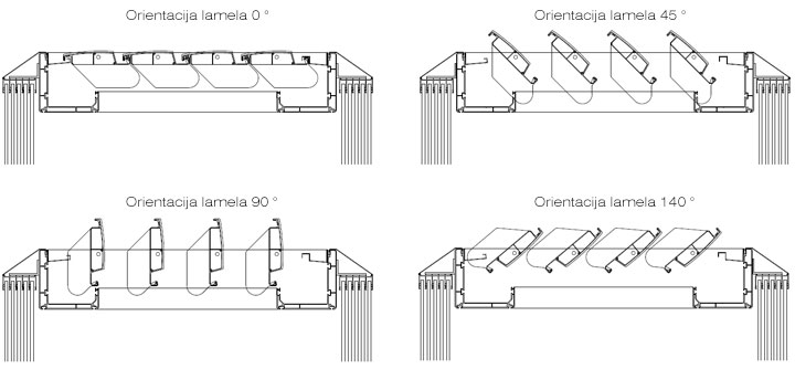 Krov aluminijskih lamela L oblike 4 x 22 cm, koji mogu biti jednostavno usmjereni od 0 ° do 140 ° sa brtvama i bočnim odvodom.