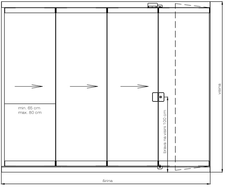 - Maksimalni broj staklenih ploča koje se mogu preklopiti na jednoj strani: 20