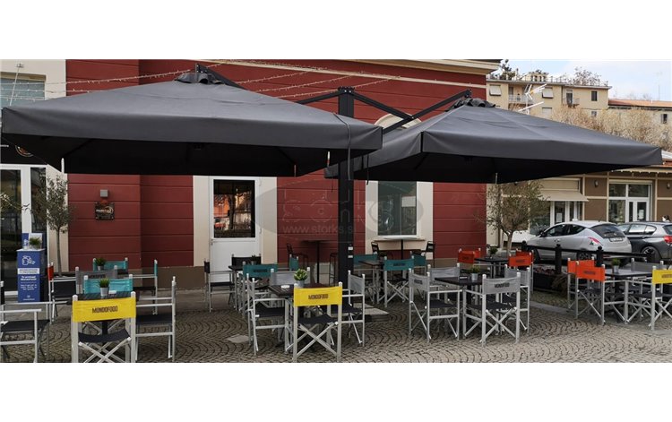 S dva nagnuta suncobrana spojena na bočnom stupu, Dublin stvara veliku pravokutnu sjenu koja može prekrivati i do 5 x 10 m. Ne samo da je jednostavan za upravljanje, već je i moćan i elegantan.Dublin odličan je izbor za trajni suncobran koji pokriva dovoljno prostora što je efikasnije moguće. Jednostavan i inovativan model može se nazvati i inženjerskim remek-djelom!PREDNOSTI- Dvostruki kišobran za prekrivanje pravokutnih površina.- Uključen je kišni oluk.- Veličina do 5 × 10 m.