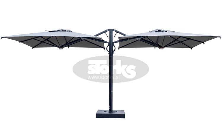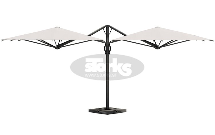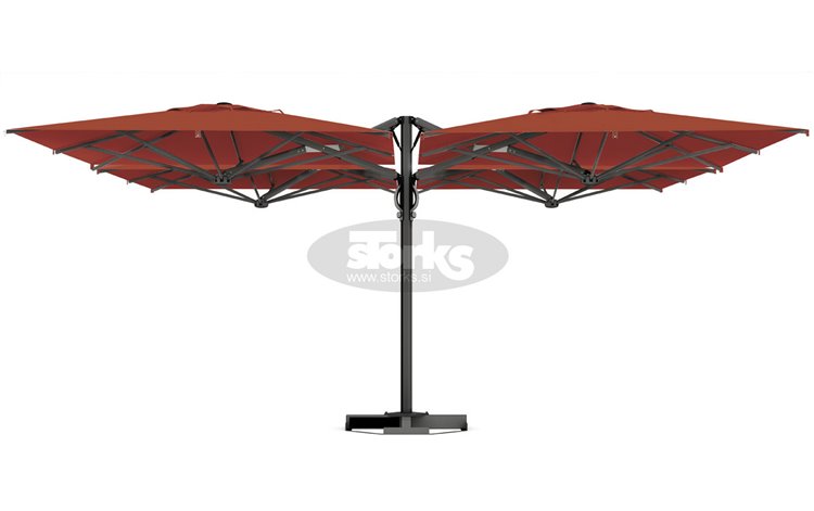 Ogroman suncobran koji se ne može previdjeti. Kao napredak u liniji s više nadstrešnica, ovaj suncobran je pravi inženjerski podvig. Ovaj suncobran posebne klase, koji se sastoji od četiri nadstrešnice kombinirane na jednom stupu, impresivan je zbog svojih dimenzija i stabilne konstrukcije.Svojim impresivnim izgledom i sofisticiranim finišom, suncobran na Quadro idealno je rješenje ako vam je potrebna zaštita od sunca i kiše na velikim površinama. Kišni oluk je također standard.