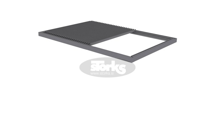 Bioklimatska samostojeća pergola s profinjenim i inovativnim dizajnom. Perimetralni profil 20 x 11 cm za otjecanje kišnice u vertikalne stupove. Krov od aluminijskih lamela širine 22 cm i visine 4 cm, koje se mogu zakretati od 0° do 120°. Konstrukcija može pružiti potpunu ili djelomičnu zaštitu od sunca te savršenu klimatizaciju. Maksimalne dimenzije jednog modula: širina 4 m x dubina 5 m, sa samo 4 stupa dimenzije 13 x 13 cm. Rad na cijevni motor.