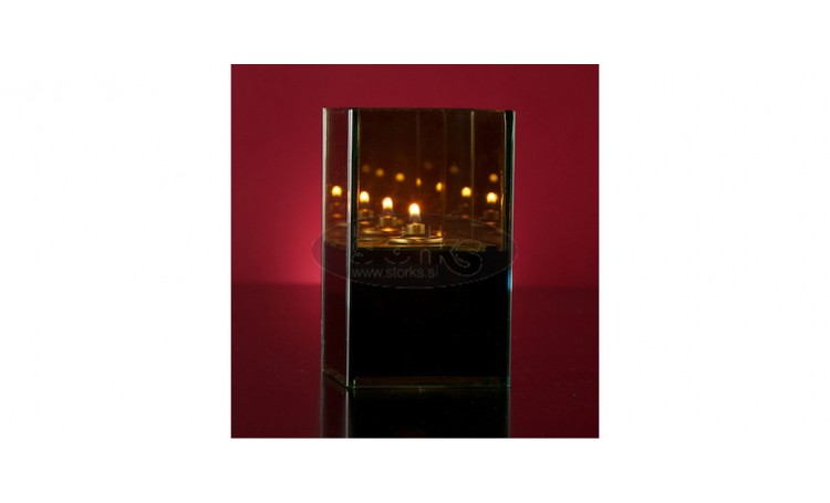 U cijelosti izrađena od reflekirajučeg stakla kako bi se stvorio privid beskonačnog svjetla. Unutra se nalazi samo jedna svijeće.Dimenzije: 150 x 90 mm Upozorenje: Ova svijeća se prodaje u kutiji sa 6 komada.
