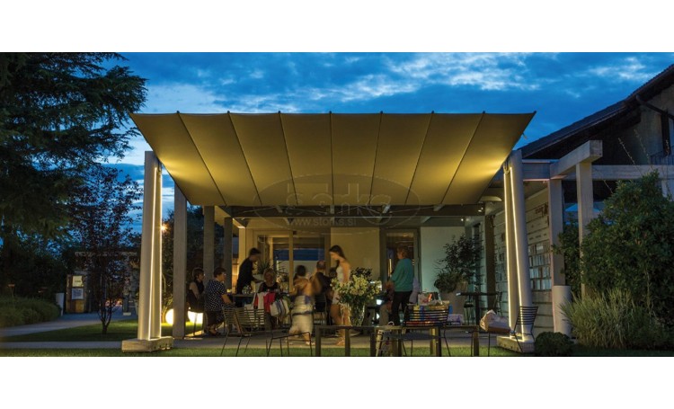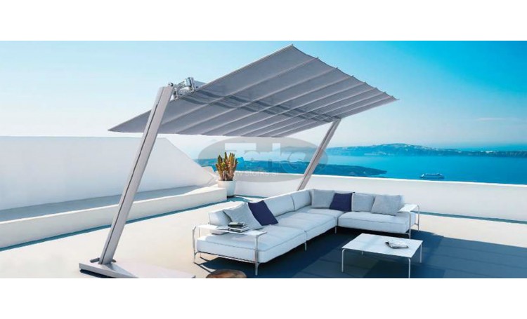 Modularni sustav s modernim, minimalističkim dizajnom koji omogućuje pokrivanje velikih područja bez središnje opstrukcije. Nagibni eliptični polovi karakteriziraju jedinstveni dizajn proizvoda. Dostupan je u 10 različitih veličina koje se mogu međusobno kombinirati, s mogućnošću pokrivanja velikih površina. Idealno za profesionalnu upotrebu (hoteli, restorani, barovi,...) i zasebnu upotrebu (vile, privatni vrtovi,...). Nadstrešnica, koja se lako može zatvoriti zahvaljujući sustavu vitla, naginje se za dodatnu sjenu tijekom dana. Dostupan je s integriranim LED rasvjetnim sustavom u stupovima. Konstrukcija je izrađena od aluminija s inox elementima. Flexy Zen može se isporučiti s samostojećim ili ugradnim podnožnim postoljem.oblik: pravokutanduljina: 250 ili 300 cmširina: 249, 309, 369, 428 ili 488 cmZaštitna prevlaka:uključena u standardnu opremumehanizem otvaranja:namotavanjem sa ručkom ili elektromotorom