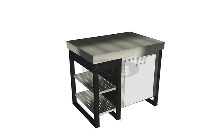 Radna ploča od nehrđajućeg čelika 304, sa dvije police. Noge i ploče izrađene su od nehrđajućeg čelika AISI 441.Ugradbeni hladnjak.