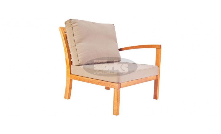 vrsta drveta: bagremboja drveta: prirodnatip stofa za jastuke: akril Dralon 100%Bagrem je izuzetno otporan na promjene vremenskih uvjeta što je tipično za naše podneblje. Tvrdoća, uz debljinu su jedna od najvažnijih karakteristika bagrema. Bagrem je vrlo tvrdo drvo. Aditivi, kao što su pigmenti, gume, smole i eterična ulja su za poboljšanje otpornosti drva. Pigmenti su prirodni konzervansi koji sprječavaju truljenje drva. Ostali dodaci poput smole, imaju neku vrstu mehaničke prepreke da se zaustavi širenje plijesni u drvu. Više o drvetu bagrem možete naći na ovom linku.1x fotelja 78 cm 90 cm 80 cm1x kut 90 cm 90 cm 80 cm1x stolica 71 cm 90 cm 80 cm1x fotelja sa desnim naslonom 75 cm 90 cm 80 cm1x fotelja sa lijevim naslonom 75 cm 90 cm 80 cm1x kavni stol 70 cm 70 cm 30 cm