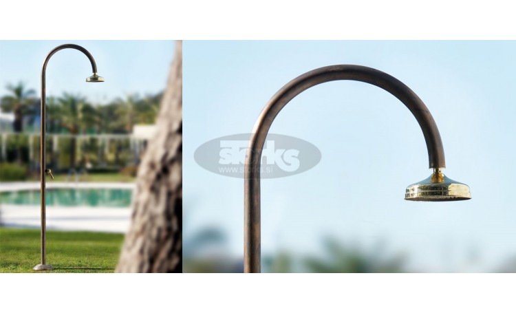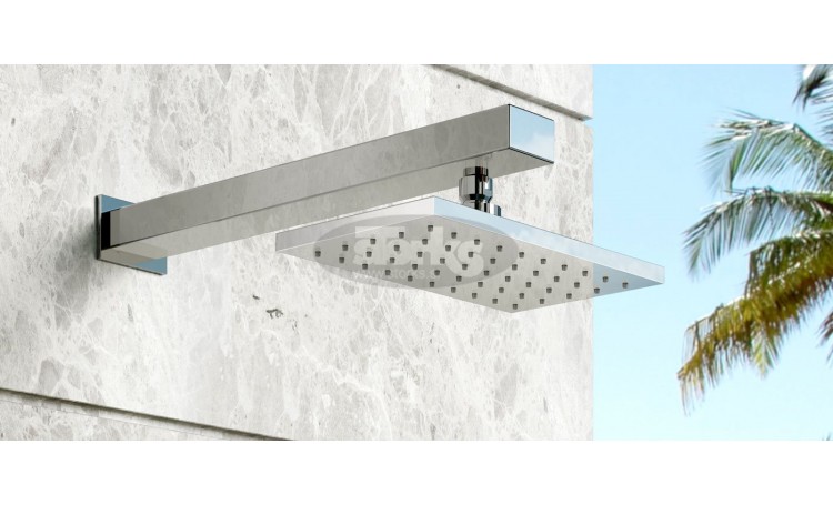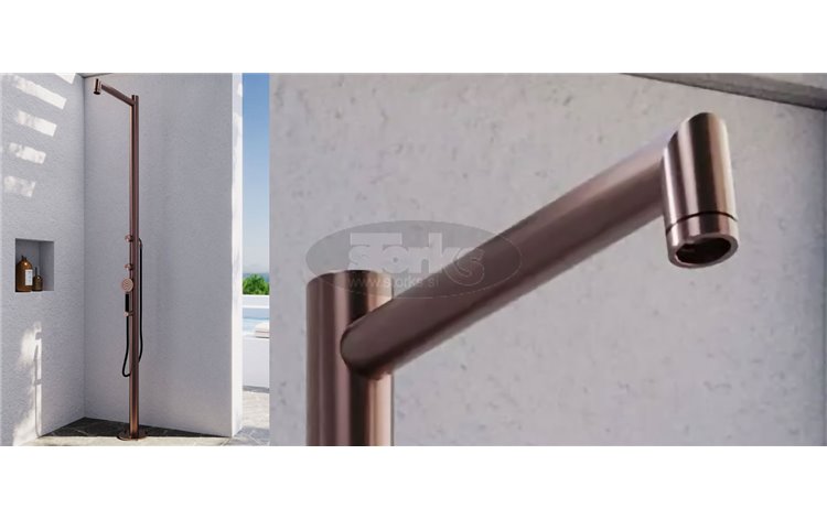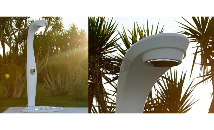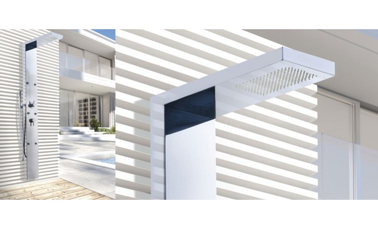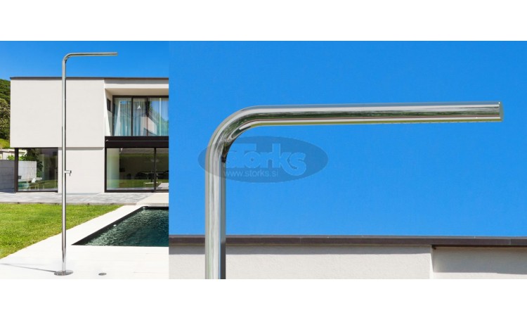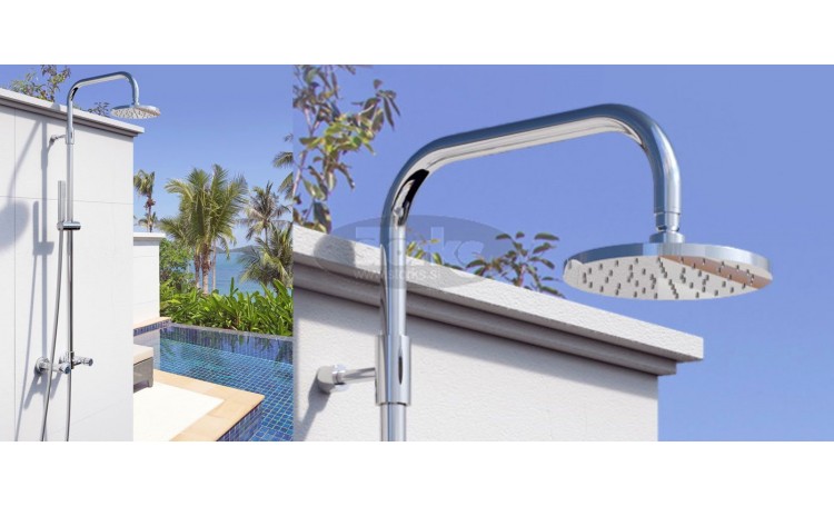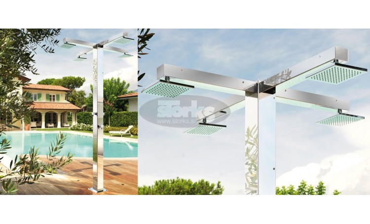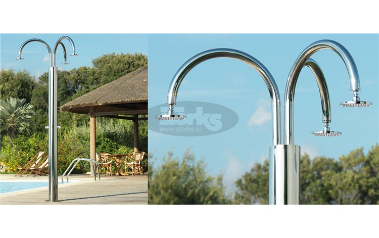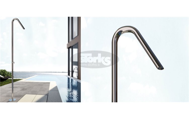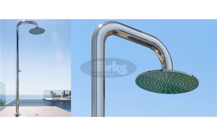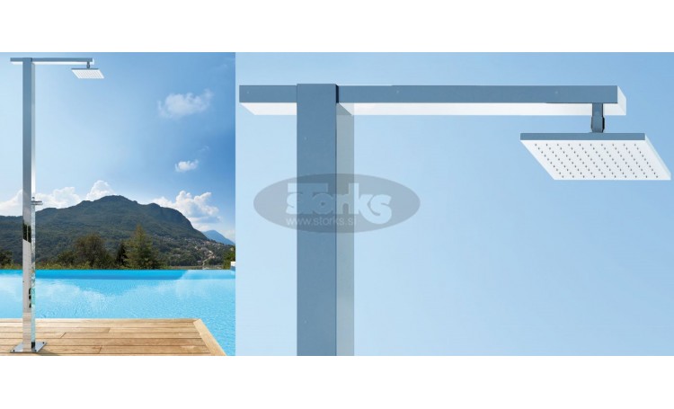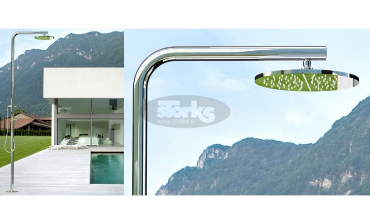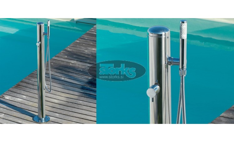 Vanjski tuš sa glavom tuša 300 mm:- sa mješalicom za udaljenu kontrolu,- sa standardnim ventilom,- sa mešalicom,- sa mešalicom i ručnim tušem.OPREMA- stup: INOX AISI 316, debljine 3 mm- noga: INOX AISI 316, debljine 5 mm- fiksacij sa navojnim šipkama, matica i podloška iz INOXa AISI 316TEHNIČKE INFORMACIJEpriljčak vode: ovisno o odabanom mehanizmupreporučen pritisak vode: 1 ÷ 5 barastandardni prikluč vode iz poda: ½" Ž