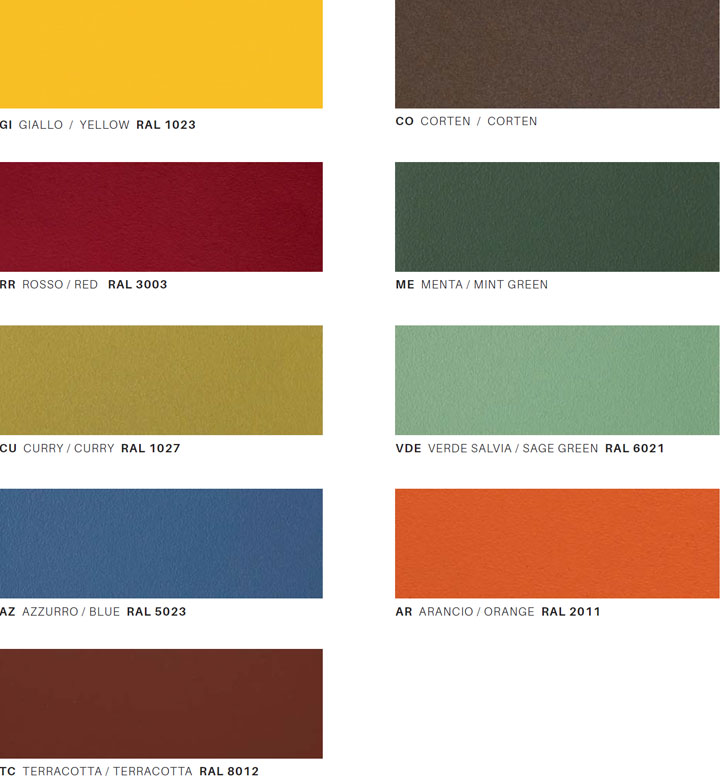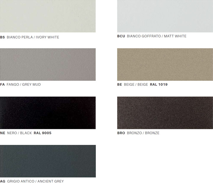 Naši kovinski izdelki so prekriti s prašno barvo Qualicoat iz poliestra razreda 1 in 2. Pred zaključnim slojem je možno uporabiti epoksidne osnove. Predvidena dostava je v 8 tednih.
