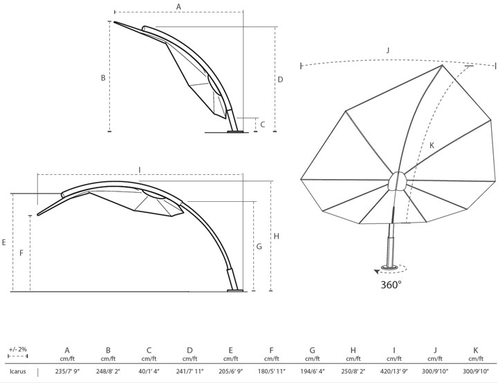 Icarus senčnik do velikosti, 300 x 300 cm