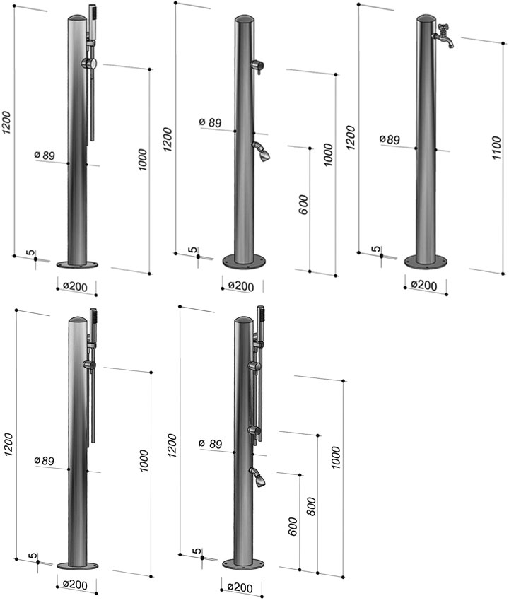 - pritrditev na tla z navojnimi palicami, maticam in podložkami iz nerjavečea jekla Aisi 316