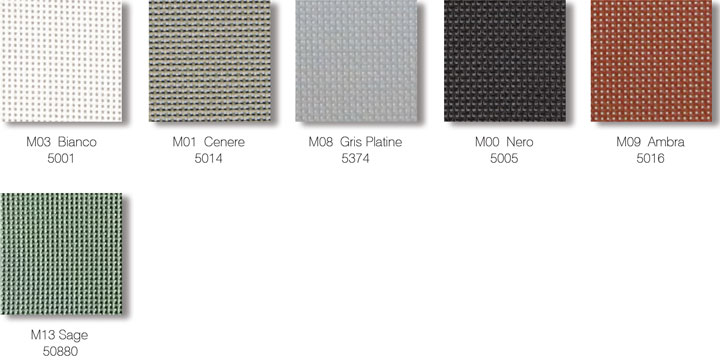 The micro-mesh structure allows a natural air circulation and though contemporarily generating a pleasant shadow. The composition of the fibres assures colour-fastness and resistance against moisture for a long time. A regular treatment of the fabric with water and soap maintains it.