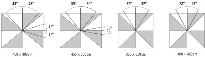 Senčnik lahko kadarkoli zavrtite za 90°. Pozor: bodite pozorni na naklon (mera Z).