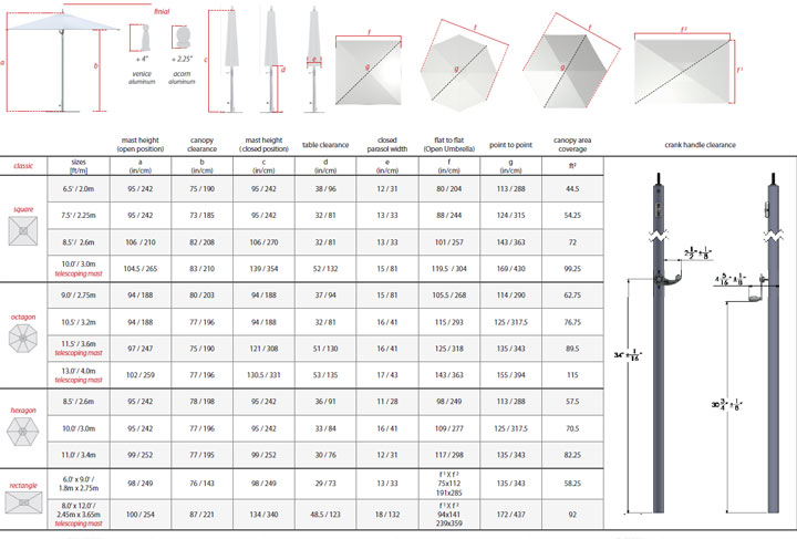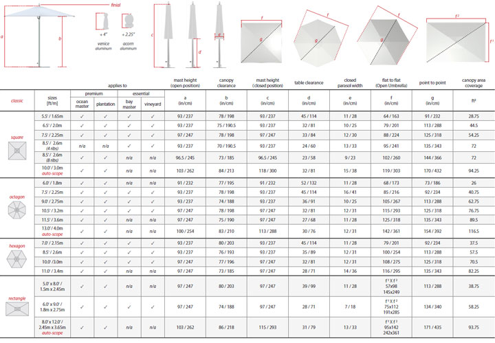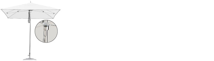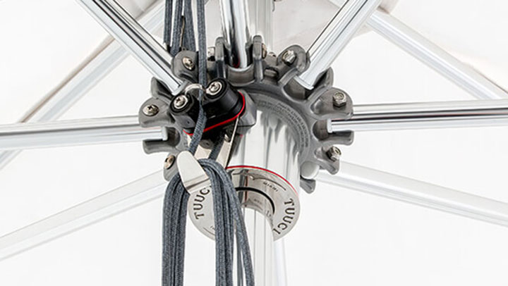 Ocean Master kolekcija TUUCI je opremljena s sistemom odpiranja s poliranega aluminija, ki je trpežen in eleganten ter dodaja WOW faktor v katero koli zunanjo okolico. Dodatno je tudi sistem samodejne blokade vrvi s katerim daje vzvod za enostavno odpiranje in zapiranje velikih dežnikov z vzdržljivostjo morskega razreda.