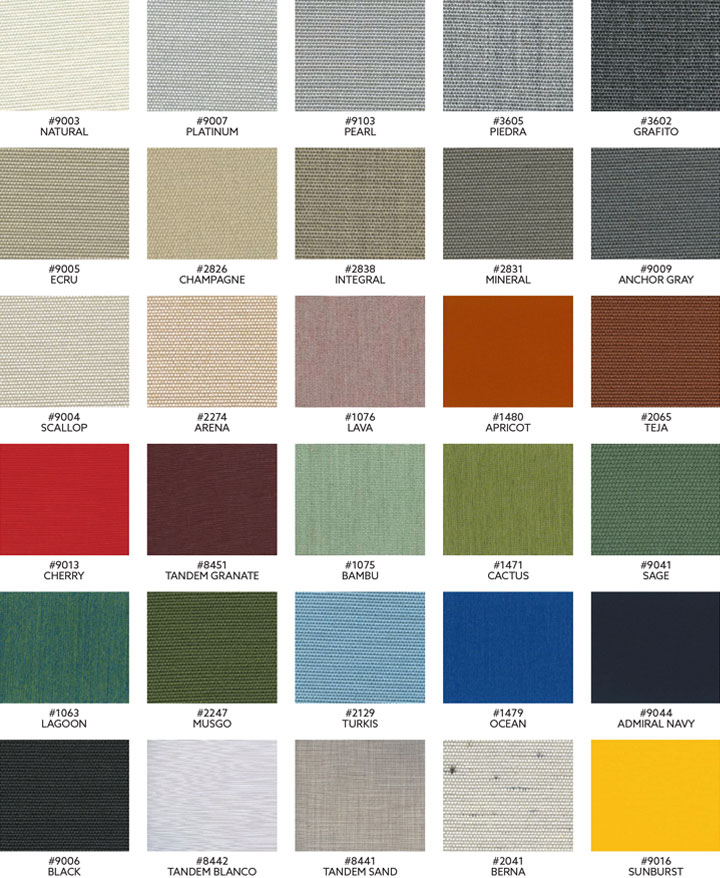 Morski razred tkanine Sunbrella je obarvano akrilno blagi, ki zagotavlja, da je tkanina odporna proti bledenju in dopušča čiščenje z belilom. Visokozmogljive tkanine Sunbrella so izdelane iz najbolj stabilnih UV vlaken na svetu. Vsak tekstil je previdno tkani, da bi bil odporen na degradacijo v najbolj skrajnih podnebjih razmerah na zemlji. Če ga uporabljamo v povezavi z našimi enostavnimi navodili za nego in čiščenje, lahko TUUCI TUFF-SKINS zagotovi dolgoletne izjemne barvne odtenke, hkrati pa dopolnjuje udobje in ambient vsakega zunanjega prostora. Sunbrella tkanine priporoča Fundacija za kožni rak.