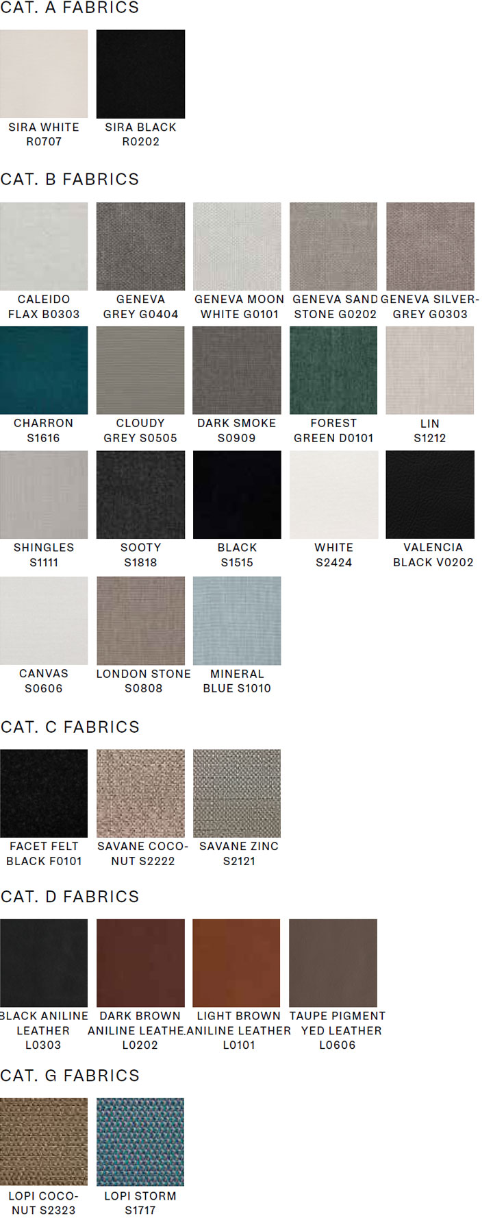Kolekcija je sestavljena iz jedilnega stola, ležalnika, dveh enosedov in dveh ležalnikov.