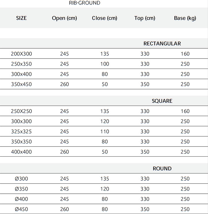 Najkakovostnejše surovine se v naših objektih spremenijo v umetniška dela - želimo zagotoviti, da se konstrukcija počuti tako zanesljivo in razkošno. Naši aluminijasti okvirji so na zahtevo prevlečeni s prahom ali eluksirani. Za vse senčnike do velikosti 4 × 4 m z ventilom so lahko rebra izdelana iz lesa Iroko ali aluminija. Večje dežnike in dežnike s patentiranim sistemom Split Solution je mogoče izdelati samo z aluminijastimi rebri. Vse druge kovinske komponente so pocinkane in prašno barvane (razen aluminijastih reber in senčnikov iz nerjavečega jekla so polirana).
