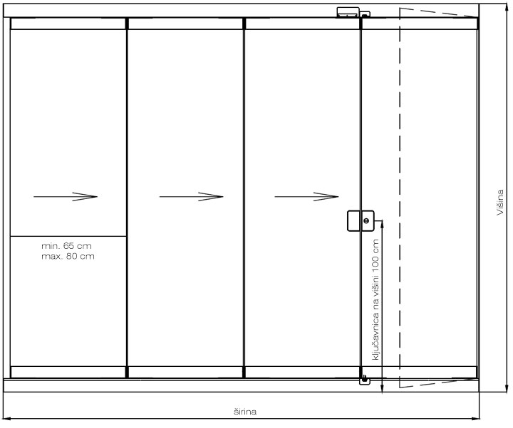 - Priporočena širina stekla: najmanj 650 mm največ 800 mm.