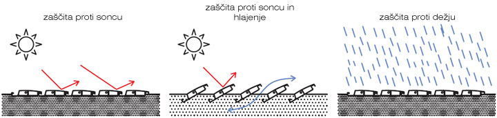 Struktura lahko nudi popolno ali delno zaščito pred soncem, popolen nadzor in zagotovljeno zavetje pred dežjem, ki postaja pravi življenjski prostor.
