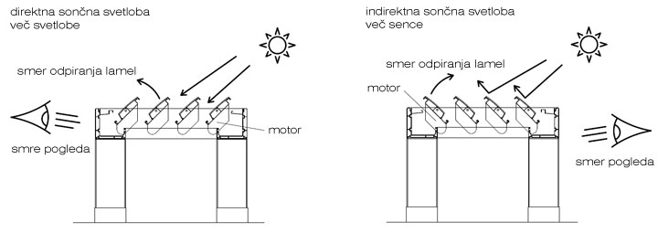 Nosilni stebri so skladni z uporabo pregrad proti soncu ali steklenih vrat, ki so popolnoma integrirani v klasične vertikalne žaluzije.