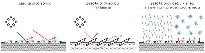 Struktura lahko nudi popolno ali delno zaščito pred soncem, popolen nadzor in zagotovljeno zavetje pred dežjem, ki postaja pravi življenjski prostor.