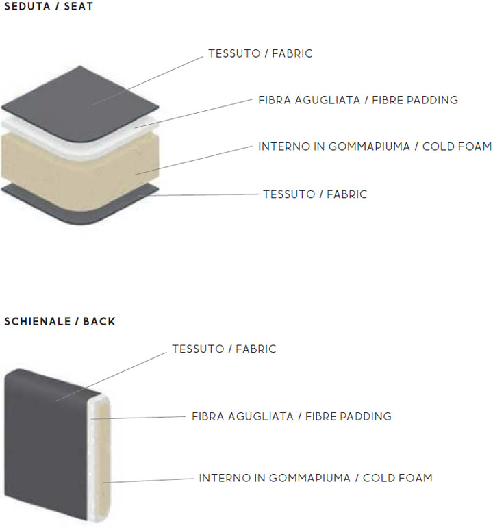 material: izbrano blago, vlaknasta obloga, pena