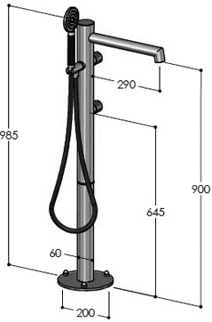 - ventil za samodejni izklop z okrasnimi deli iz nerjavečega jekla Aisi 316 + ročni tuš