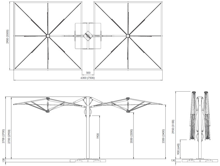Izdelan iz visoko vzdržljivega aluminijastega okvirja v lesnem videzu je senčnik Astro odporen na slano vodo in UV-razgradnjo, kar zagotavlja dolgo življenjsko dobo in zanesljivost. Njegova inovativna zasnova je visoko cenjena v sektorju zunanjega pohištva. Robustna struktura vključuje dva senčnika, pritrjene na eno samo podporo, kar zagotavlja trdnost in vsestranskost.